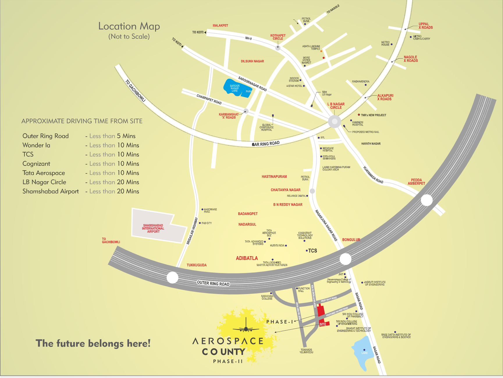 Aerospace County, Phase-II is a layout of premium open plots being developed by Green City Dukes Estates. Strategically located at five minutes drive from ORR, the HMDA layout offers plots for investment and a lifestyle of freedom and security in pollution-free environment.